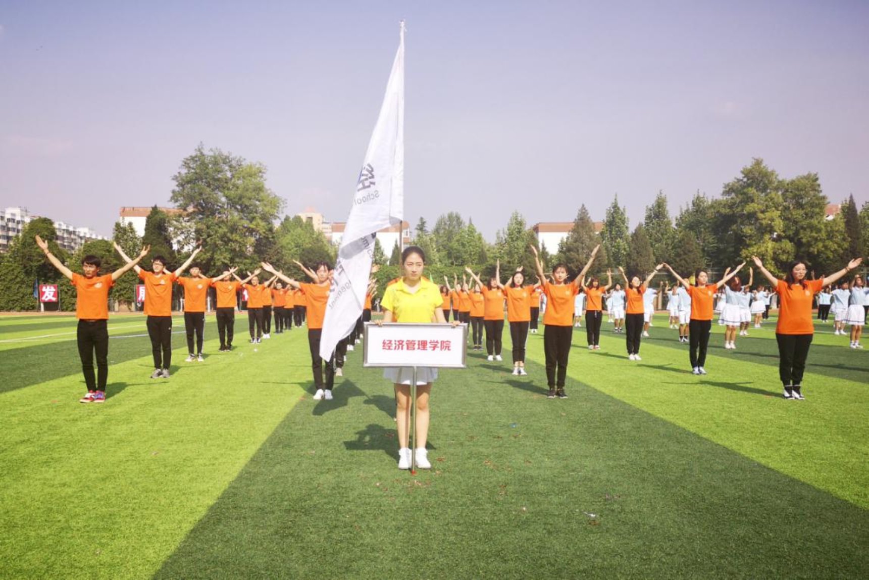 在开幕式上,经管学院师生方阵远远走来,整齐划一的步伐、热情动人的笑容,展现了经管学院昂扬的风采。